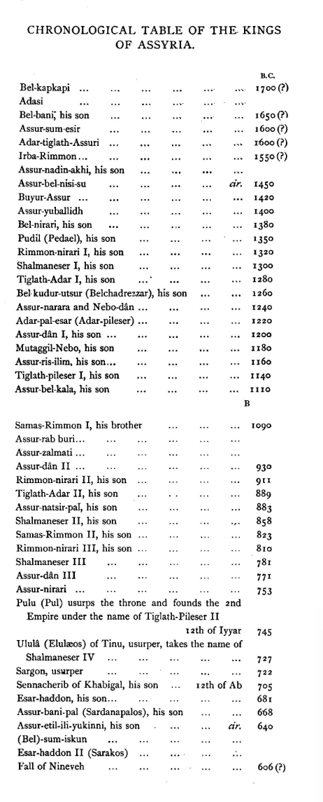 Chronological Table of the Kings of Assyria.